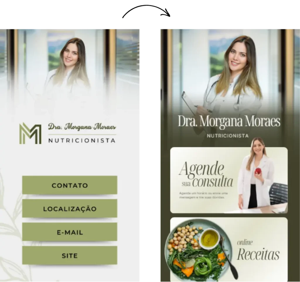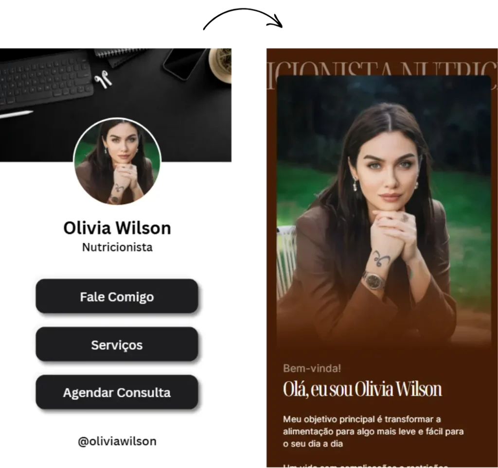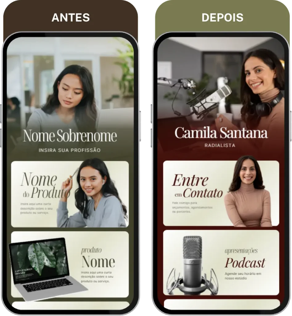 Receba diversos modelos prontos, personalize cores, fontes e imagens e publique na sua bio em minutos.